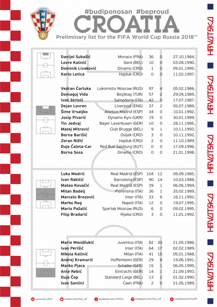 La Croazia ha diramato la lista dei 32 pre-selezionati per il Mondiale russo. Nell’elenco compare anche il nome dell’ex attaccante dell’Hellas Verona, Ante Rebic. Il classe 1993 è attualmente un giocatore dell’Eintracht Francoforte. La lista finale sarà composta da 23 giocatori.