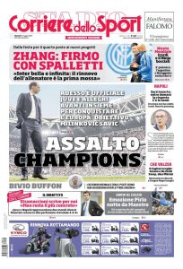 Come un covo per spie Milano è stata ieri luogo di assembramento straordinario di leggende del calcio, tutti a San Siro per l’ultima partita con Andrea Pirlo. Intanto sui giornali il mercato si è già infiammato. Sulle prime pagine i soldi Champions dell’Inter, la situazione fra Sarri e il Napoli, la conferma di Allegri alla Juvntus e il bivio di Buffon: il Paris Saint-Germain sembra più vicino.