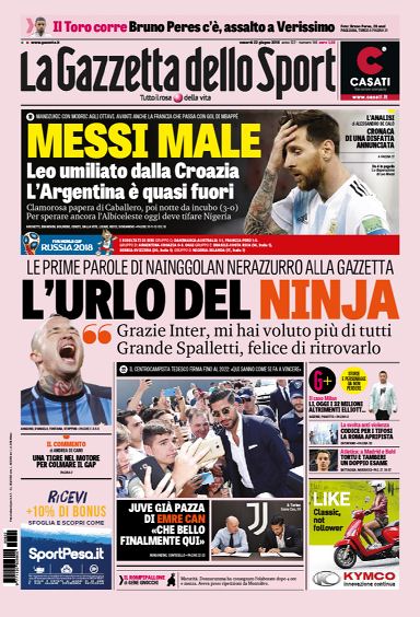 VenerdƬ 22 giugno, secondo giorno d’estate e primo weekend formalmente estivo in arrivo Messi e l’umiliazione dell’Argentina ai Mondiali, calciomercato...