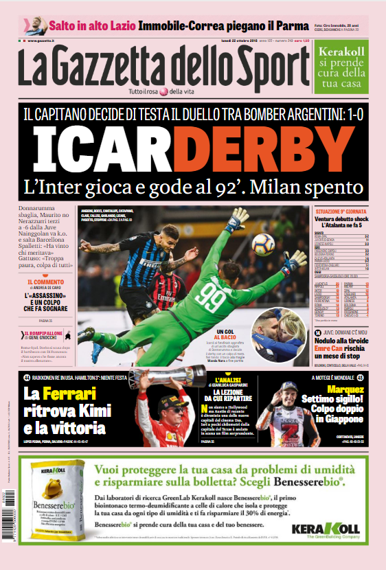 Non poteva che essere Mauro Icardi l’assoluto protagonista delle copertine di Gazzetta e Corriere: il bomber interista (con l’involontario aiuto...