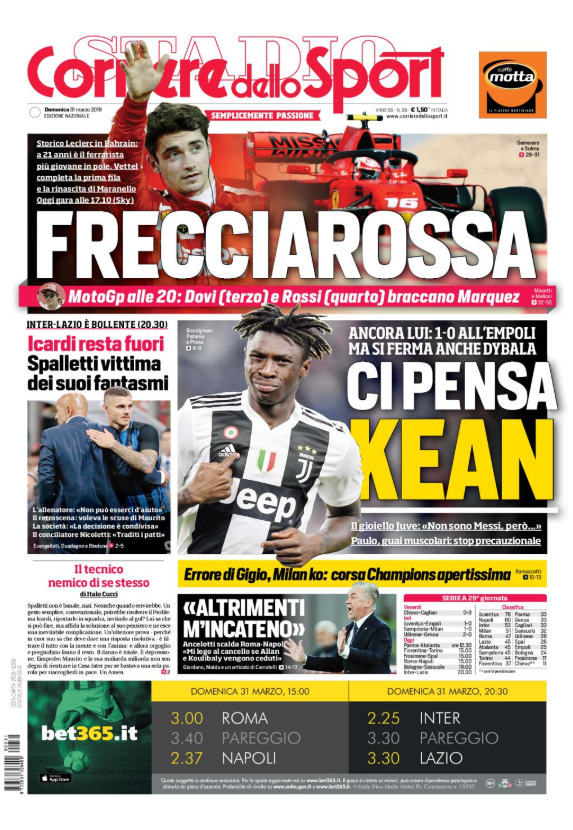 La sconfitta del Milan, il nuovo “caso-Icardi“, la Juventus di Kean e la Ferrari: sono veramente tanti gli argomenti delle...