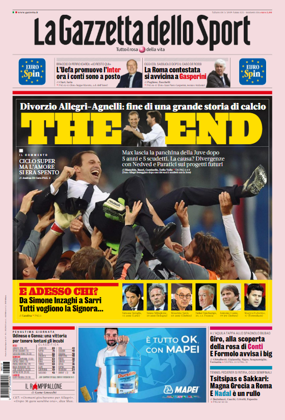 L’argomento del giorno sulle maggiori testate sportive nazionali non poteva che essere il divorzio tra la Juventus e Allegri. Queste...