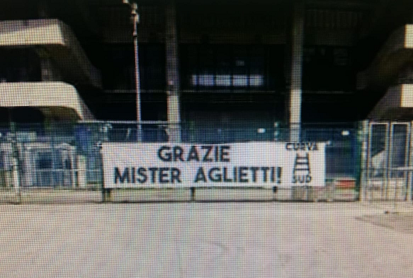 Striscione di ringraziamento sotto la Curva da parte del tifo più caldo dell’Hellas Ā«GRAZIE MISTER AGLIETTIĀ». Poche parole ma dal...