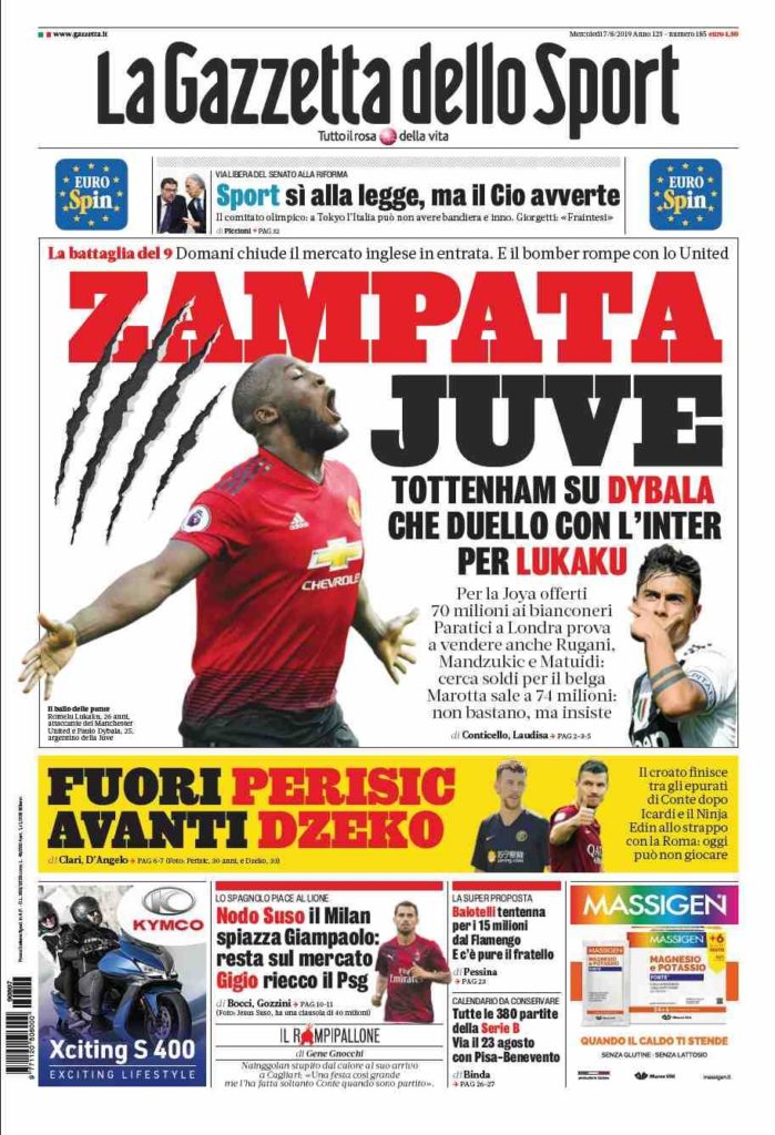 Le prime pagine dei quotidiani sportivi in edicola oggi, mercoledƬ 7 agosto 2019