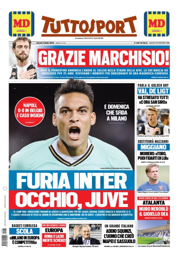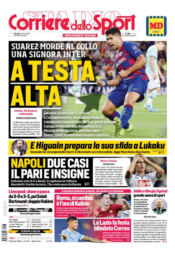 Tra Champions League ed Europa League, c’è tanto calcio europeo sulle copertine odierne dei maggiori quotidiani sportivi nazionali.