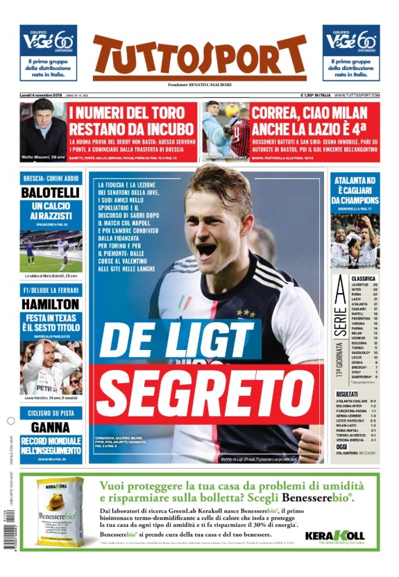 Queste infatti le prime pagine di Gazzetta, Corriere e Tuttosport: