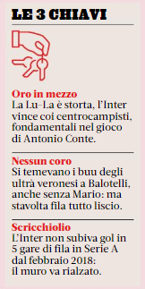 Si temevano i buu degli ultrà veronesi a Balotelli, anche senza Mario: ma stavolta fila tutto liscio»: questa una delle tre “chiavi” dell’incontro di ieri secondo La Gazzetta dello Sport.