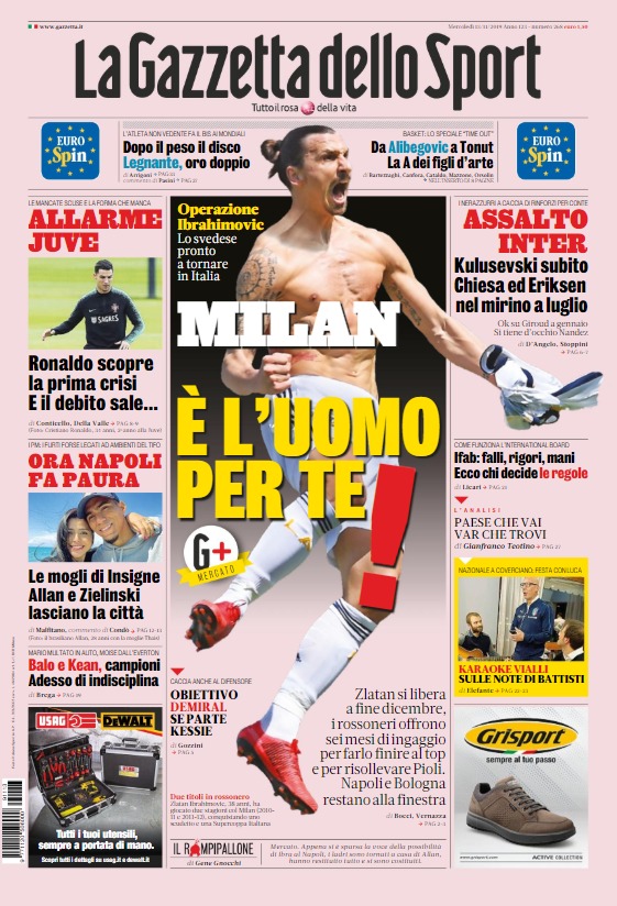 Ibrahimovic, Cristiano Ronaldo, Montolivo… c’ĆØ un po’ di varietĆ sulle copertine odierne dei maggiori quotidiani sportivi nazionali. Queste infatti le...