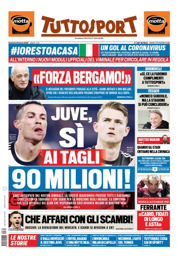 Ć il taglio degli stipendi in casa Juventus l’argomento principale delle copertine odierne dei maggiori quotidiani sportivi nazionali. Queste infatti...