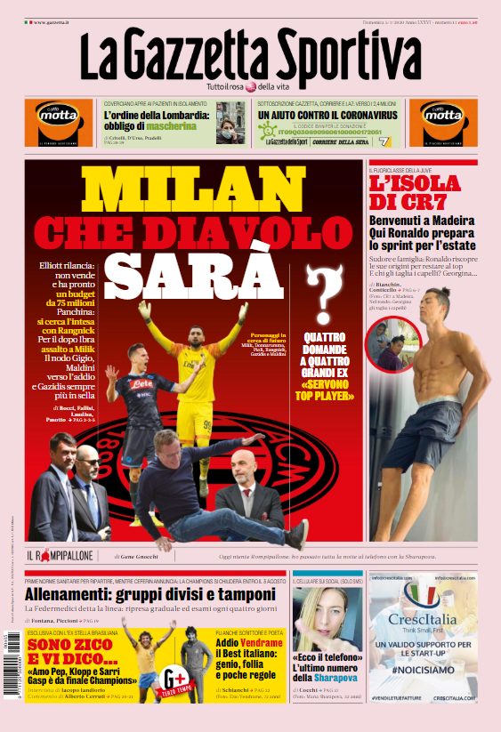 Tra ripresa dei campionati e futuro del calcio c’è varietà quest’oggi sulle copertine dei maggiori quotidiani sportivi nazionali.