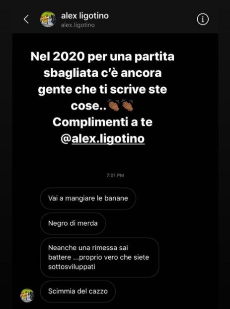 Questa, infatti, la chat postata dal giocatore su Instagram: