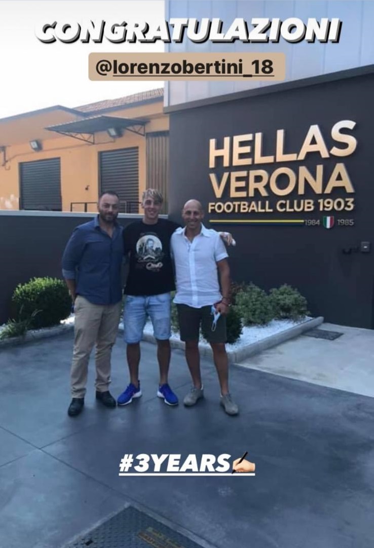 A renderlo noto è il suo entourage attraverso una Instagram Story (in foto, da sinistra verso destra, Ulisse Savini della Top Eleven Management, Lorenzo Bertini e il padre di quest’ultimo):