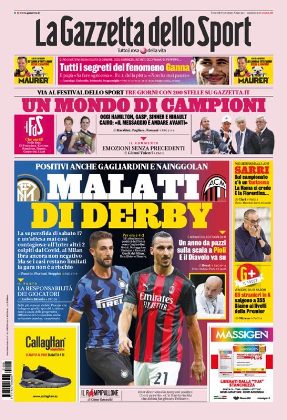 Sono il Derby della Madonnina e Andrea Pirlo a prendersi la scena sulle copertine odierne dei maggiori quotidiani sportivi nazionali....