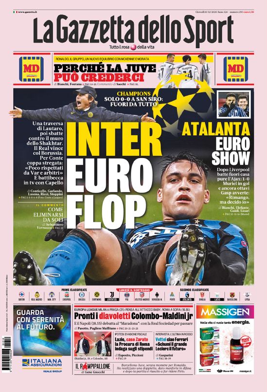 Ć ovviamente l’euroflop dell’Inter l’argomento principale delle copertine odierne dei maggiori quotidiani sportivi nazionali. Queste infatti le prime pagine di...