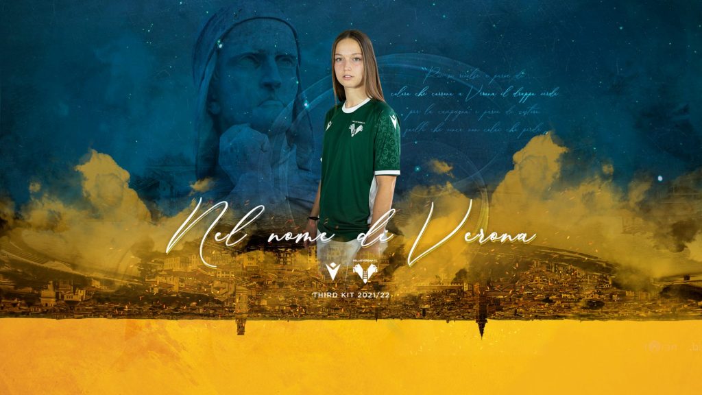 Se l’Home Kit (con le Arche Scaligere simbolo della famiglia che ha accolto Dante Alighieri nella nostra città) e quello Away (con i colori di Verona e la frase della Divina Commedia sul fondo) avevano importanti riferimenti alla figura del Sommo Poeta, il Kit Third è interamente dedicato a lui e alle più antiche tradizioni della città di Verona. E’ addirittura antecedente alla presa del potere da parte degli Scaligeri, infatti, l’istituzione di una corsa che si tiene tutt’oggi nella nostra città: il Palio del Drappo Verde.