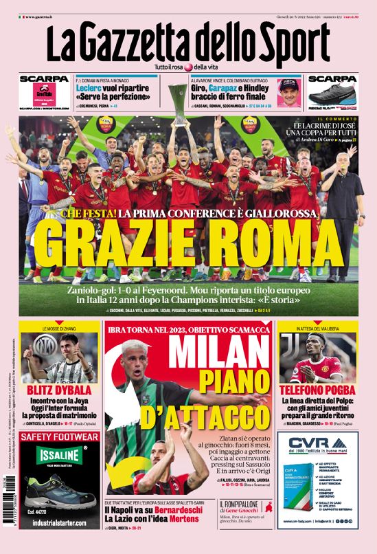 Ć ovviamente la vittoria in Conference League della Roma l’argomento principale sulle copertine odierne dei maggiori quotidiani sportivi nazionali. Queste...