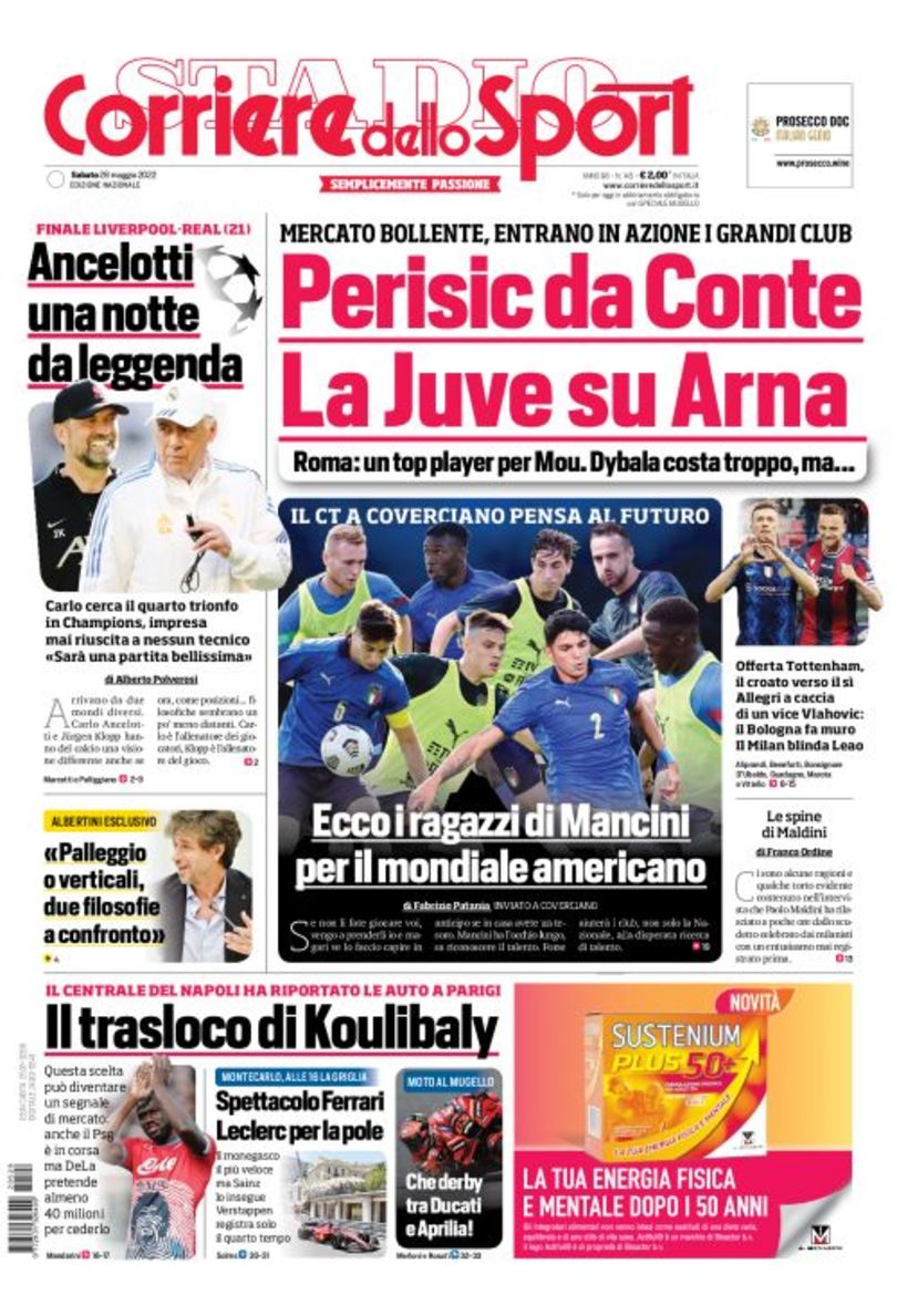 Tanto calciomercato, ma anche la finale di Champions League: sono questi gli argomenti principali delle copertine odierne dei maggiori quotidiani sportiv nazionali.