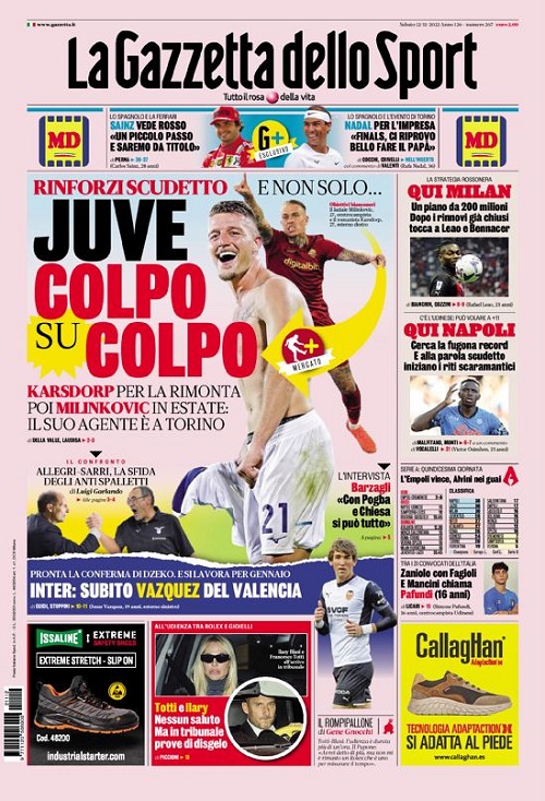 La Serie A e il calciomercato si prendono le copertine odierne dei maggiori quotidiani sportivi nazionali. Queste infatti le prime...