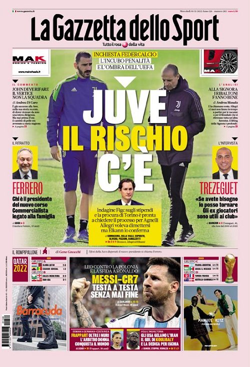 Ć sempre il caos presente tra le fila della Juventus a tenere banco sulle copertine odierne dei maggiori quotidiani sportivi...