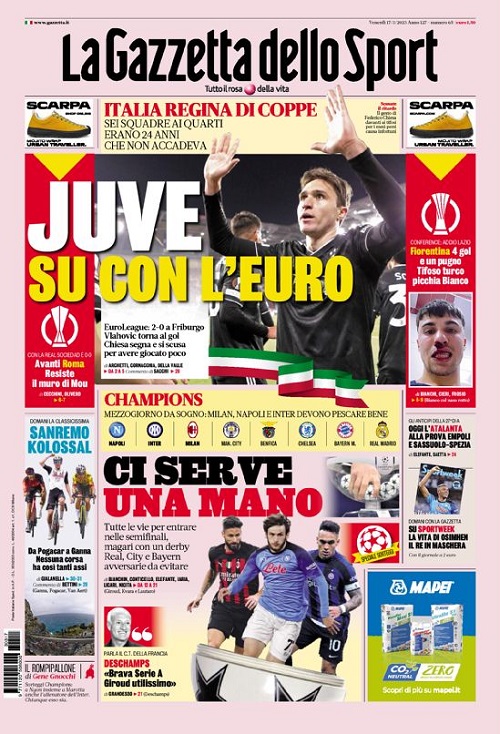 Le coppe europee e i sorteggi si prendono le copertine odierne dei maggiori quotidiani sportivi nazionali. Queste, infatti, le prime...