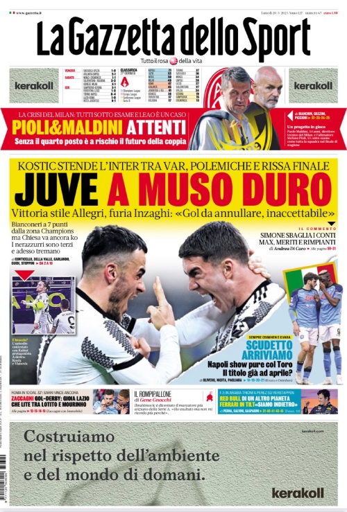 Il Derby d’Italia e il derby di Roma si prendono le copertine odierne dei maggiori quotidiani sportivi nazionali. Queste infatti...