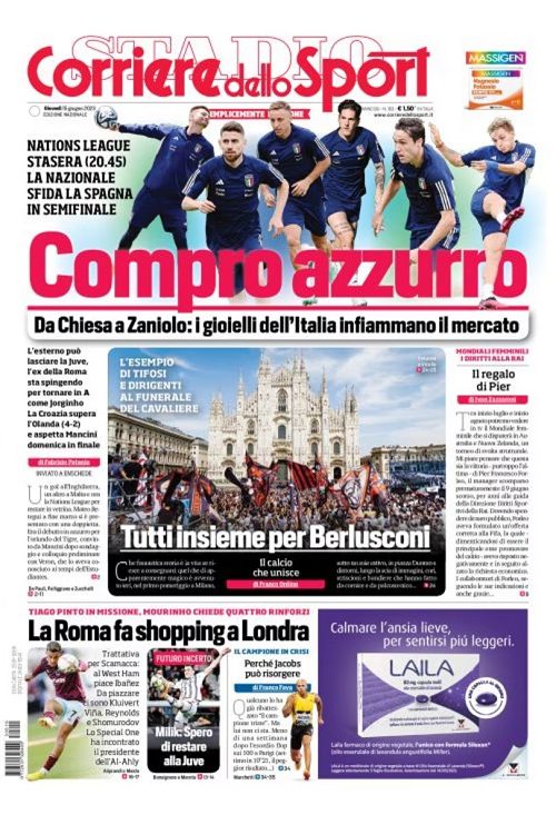 L’addio a Berlusconi e il calciomercato si prendono le copertine odierne dei maggiori quotidiani sportivi nazionali.