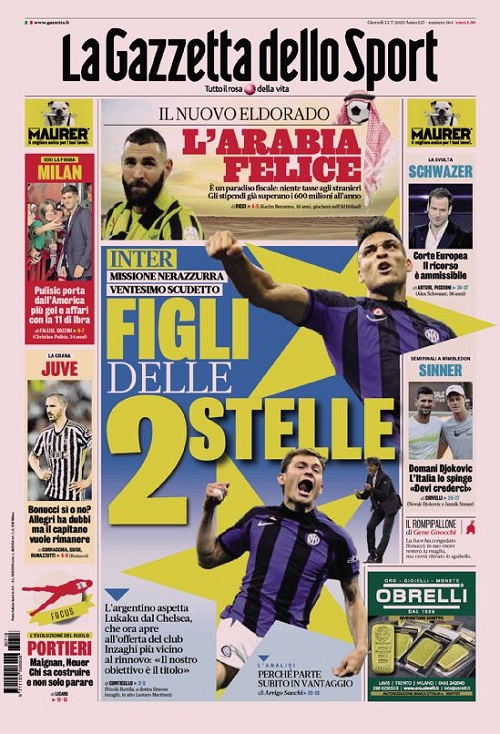 Queste infatti le prime pagine di Gazzetta, Corriere e Tuttosport oggi in edicola: