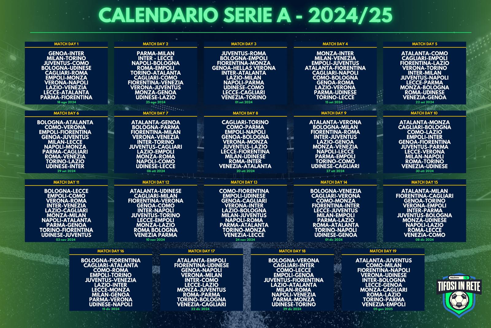 Dopo aver conosciuto il calendario dell’Hellas, ĆØ tempo di mostrarvi tutte le partite della Serie A 2024/2025.