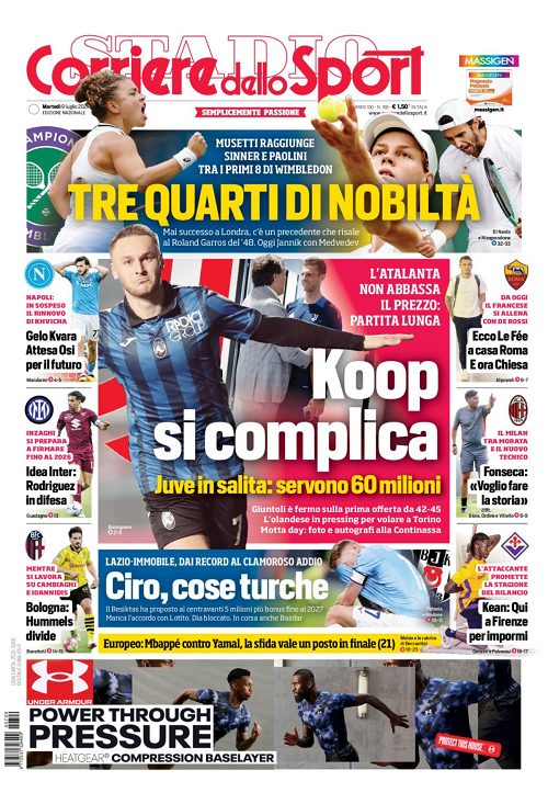 Queste infatti le prime pagine di Gazzetta, Corriere e Tuttosport oggi in edicola: