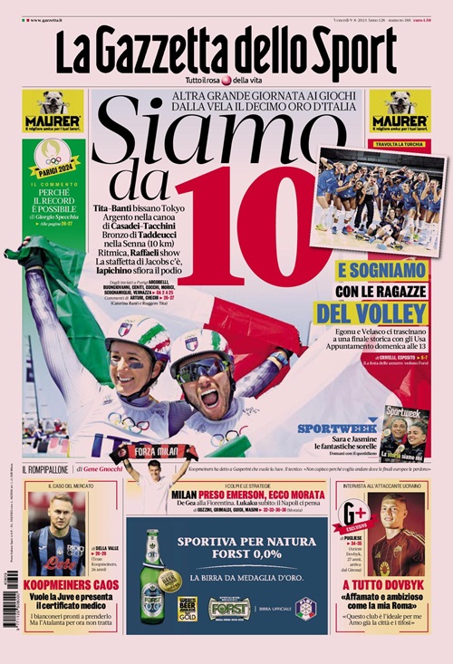 Olimpiadi e calciomercato sono i protagonisti delle copertine odierne dei maggiori quotidiani sportivi nazionali. Queste infatti le prime pagine di...