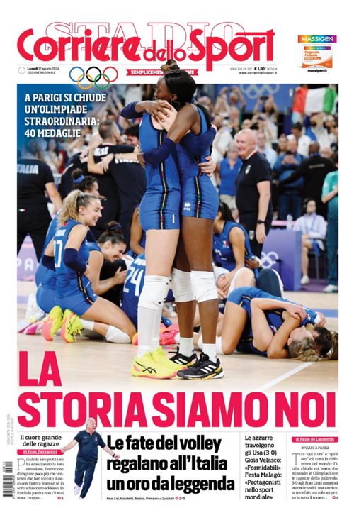 Il calciomercato e le Olimpiadi con l’oro dell’Italvolley femminile si prendono le copertine dei quotidiani sportivi nazionali.