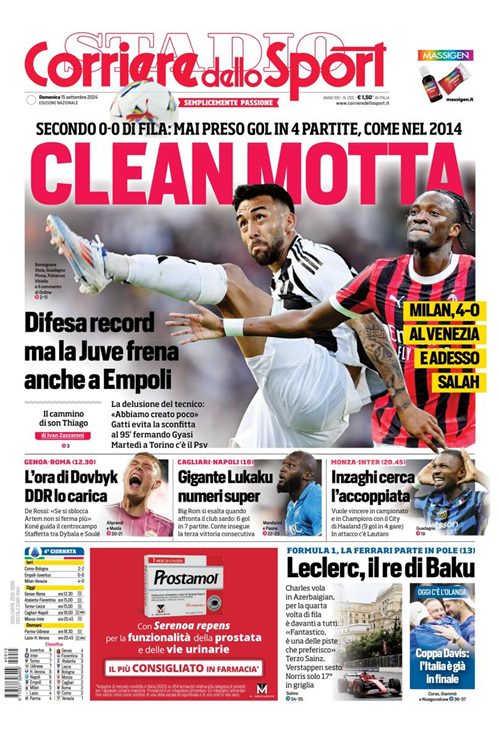 La Serie A, giunta nel pieno della quarta giornata, si guadagna tutte le copertine dei maggiori quotidiani sportivi nazionali.