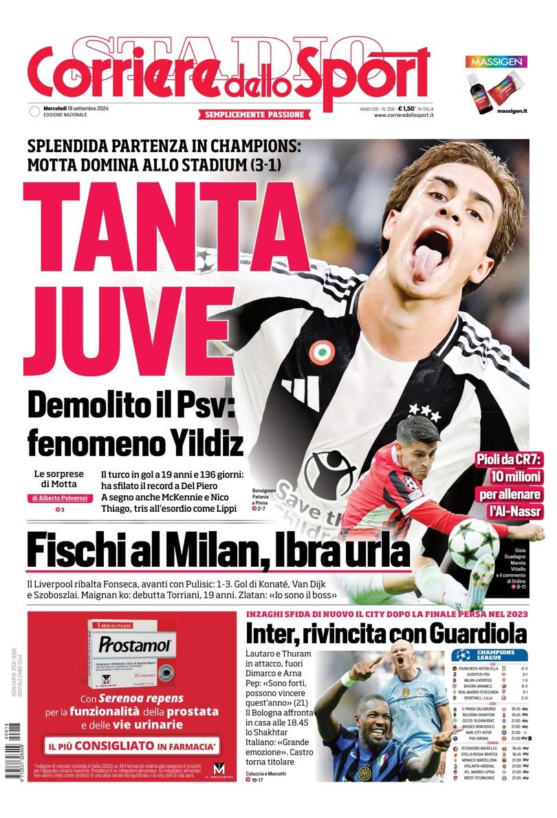 Queste infatti le prime pagine di Gazzetta, Corriere e Tuttosport: