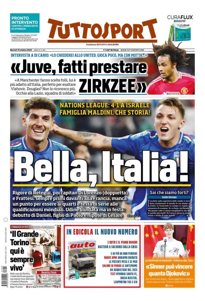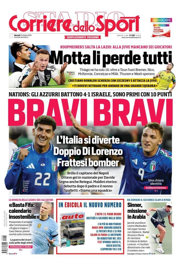 La vittoria della Nazionale contro Israele occupa le copertine odierne dei principali quotidiani sportivi italiani.