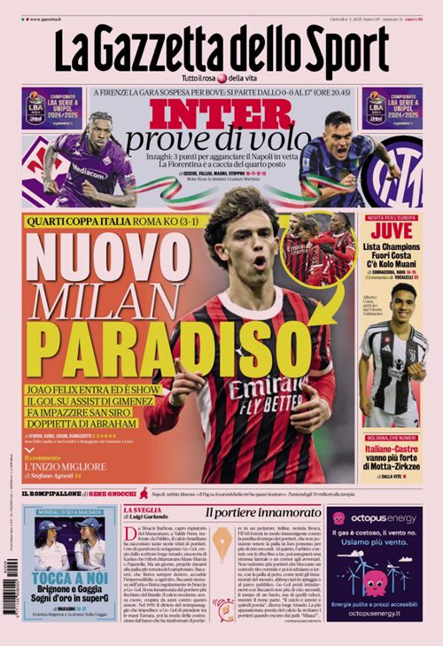 Le prime pagine dei quotidiani sportivi in edicola oggi, giovedƬ 6 febbraio 2025...