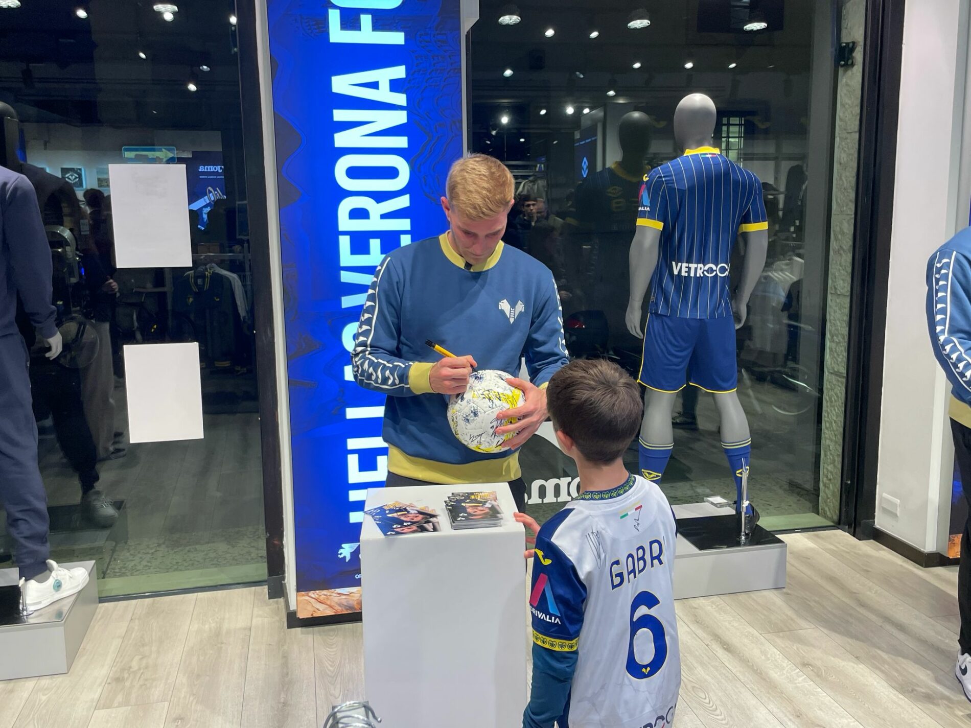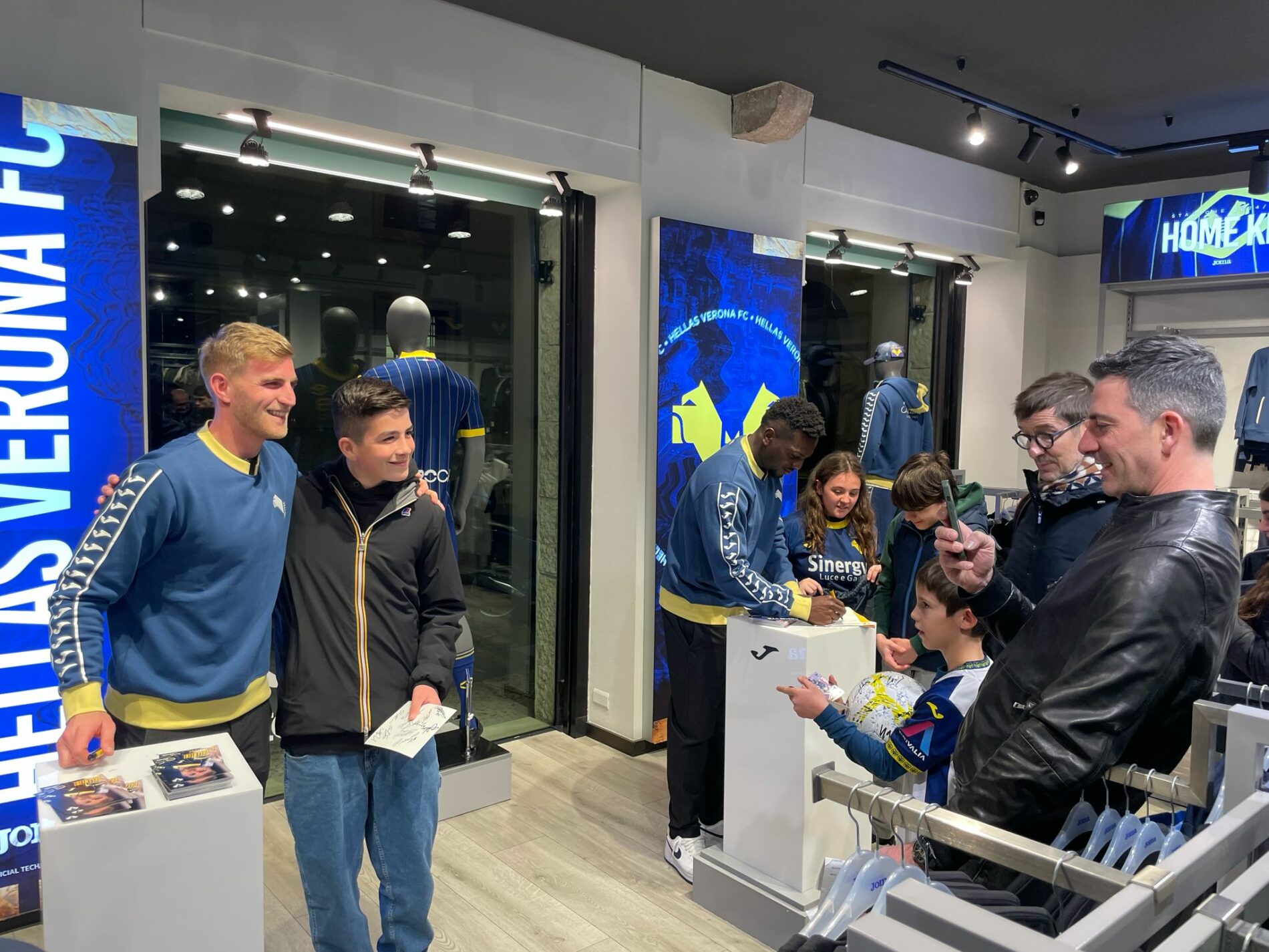 Circa un centinaio di tifosi gialloblù erano presenti all’Hellas Store di via Carlo Cattaneo 2, per incontrare da vicino Daniel Mosquera e Nicolas Valentini.