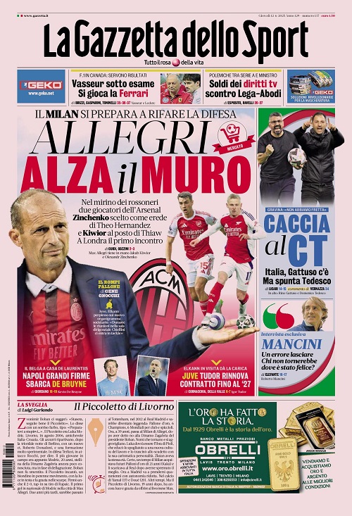 Il calciomercato e il toto CT si prendono le copertine odierne dei maggiori quotidiani sportivi nazionali. Queste infatti le prime...
