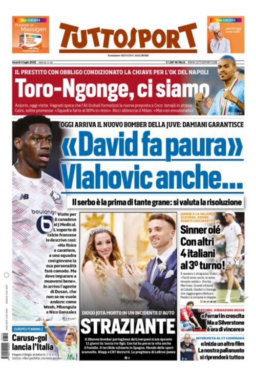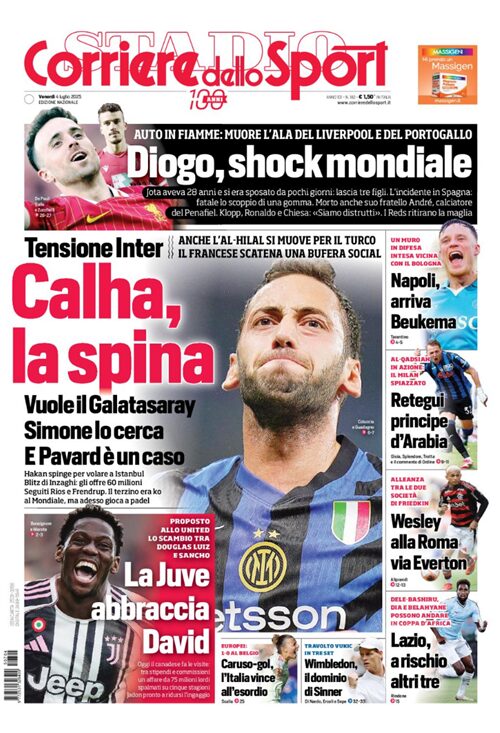 La morte di Diogo Jota e il calciomercato occupano le copertine dei maggiori quotidiani sportivi nazionali.