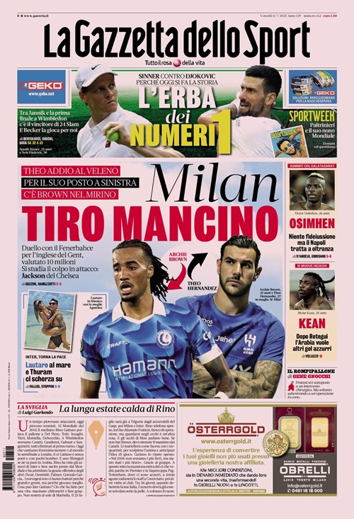 Il calciomercato e il tennis si prendono le copertine dei maggiori quotidiani sportivi nazionali. Queste infatti le prime pagine di...