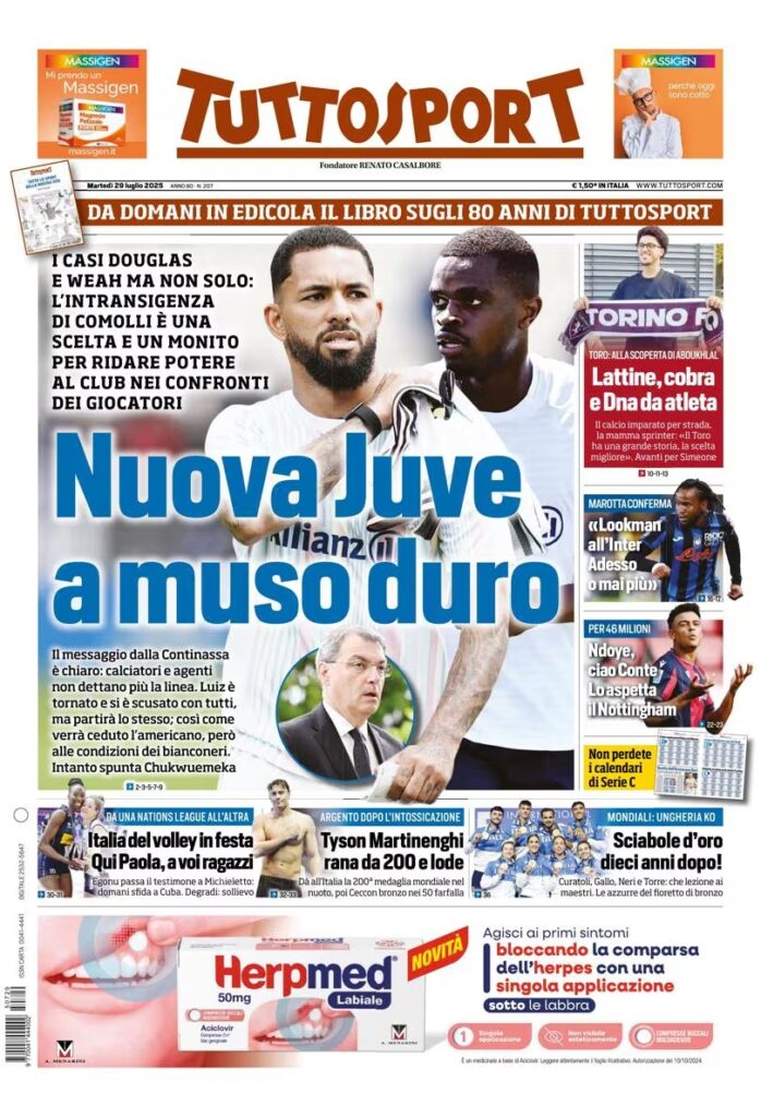 Queste infatti le prime pagine di Gazzetta, Corriere e Tuttosport oggi in edicola: