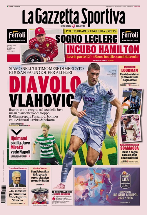 Il calciomercato si prende le copertine dei maggiori quotidiani sportivi nazionali.