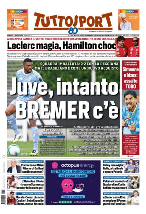 Queste infatti le prime pagine di Gazzetta, Corriere e Tuttosport oggi in edicola: