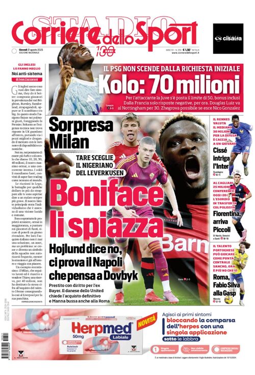 Queste infatti le prime pagine di Gazzetta, Corriere e Tuttosport oggi in edicola: