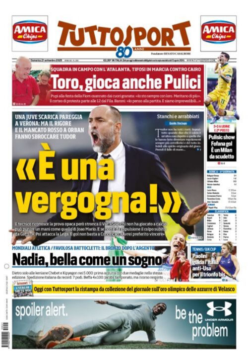 Il pareggio tra Verona e Juventus (con annesse polemiche) si prende le copertine dei maggiori quotidiani sportivi nazionali. Queste infatti...