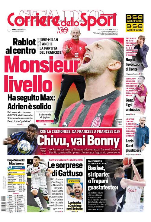 Queste infatti le prime pagine di Gazzetta, Corriere e Tuttosport oggi in edicola: