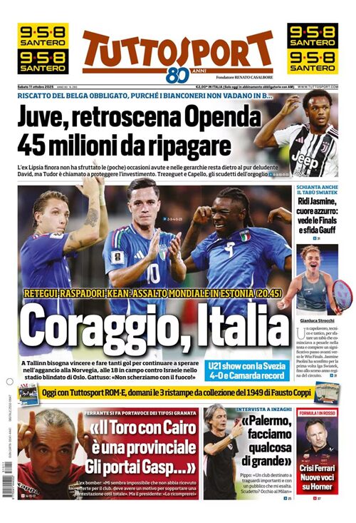 La Nazionale in campo contro l’Estonia si prende le copertine odierne dei maggiori quotidiani sportivi nazionali.