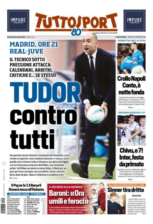 La vittoria dell’Inter e il tonfo del Napoli in Champions si prendono le copertine dei maggiori quotidiani sportivi nazionali. Queste...