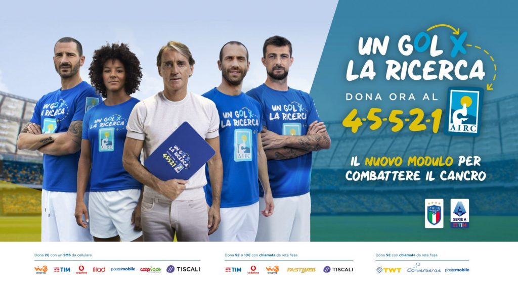 Il fischio di inizio di Un Gol per la Ricerca è previsto per venerdì 7 novembre, in occasione del primo anticipo dell’undicesima giornata di campionato, e proseguirà via via su tutti i campi della Serie A Enilive per arrivare fino alle partite di qualificazione ai mondiali Moldova-Italia di giovedì 13 e Italia-Norvegia di domenica 16 novembre. Calciatori, allenatori e arbitri invitano tifosi e appassionati a unirsi alla squadra di chi crede nella ricerca facendo tanti gol per rendere il cancro sempre più curabile attraverso le donazioni con SMS o chiamate da telefono fisso al numero 45521 o con carta di credito su airc.it.
