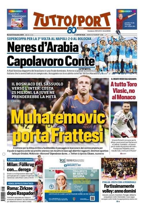 La Supercoppa vinta dal Napoli si prende le copertine dei maggiori quotidiani sportivi nazionali. Queste infatti le prime pagine di...