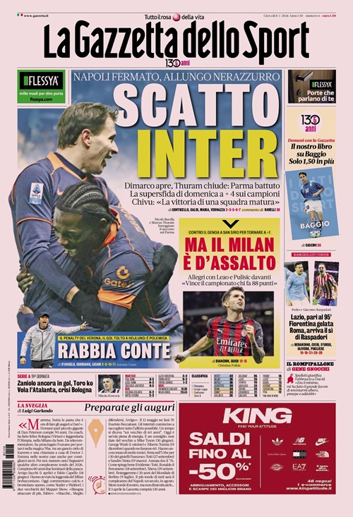 La “minifuga” in classifica dell’Inter (dovuta anche al Verona) si prende le copertine odierne dei maggiori quotidiani sportivi nazionali. Queste...